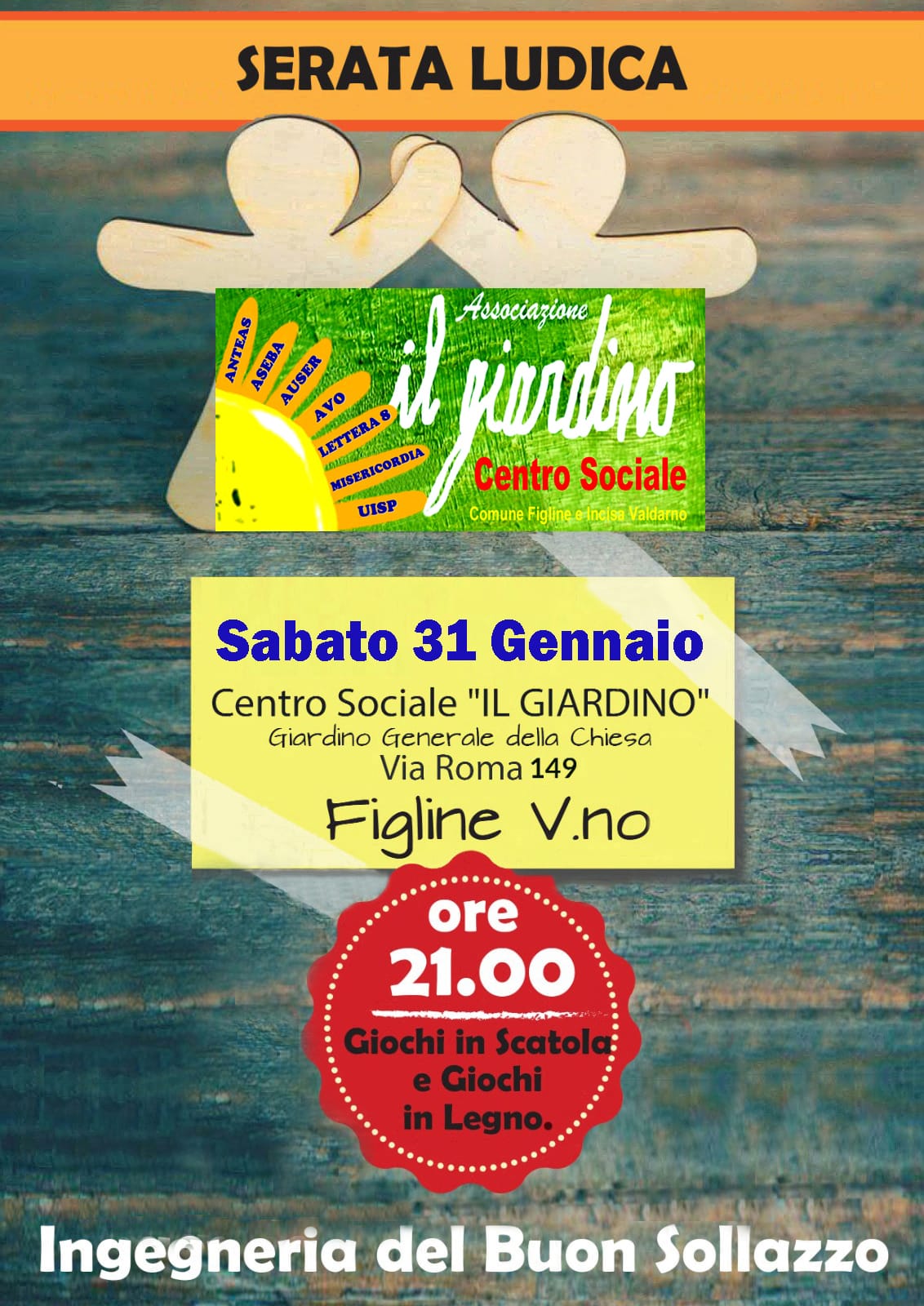 L'associazione Ingegneria del Buon Sollazzo in collaborazione col Centro Sociale Il Giardino, organizza una Serata Ludica il giorno Sabato 31 Gennaio dalle ore 21:00.